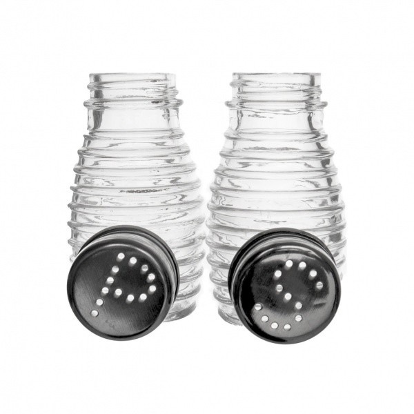 Praktické duo, díky kterému budete mít solničku a pepřenku neustále při ruce. Skleněné nádoby jsou zdobené výrazným vroubkováním.