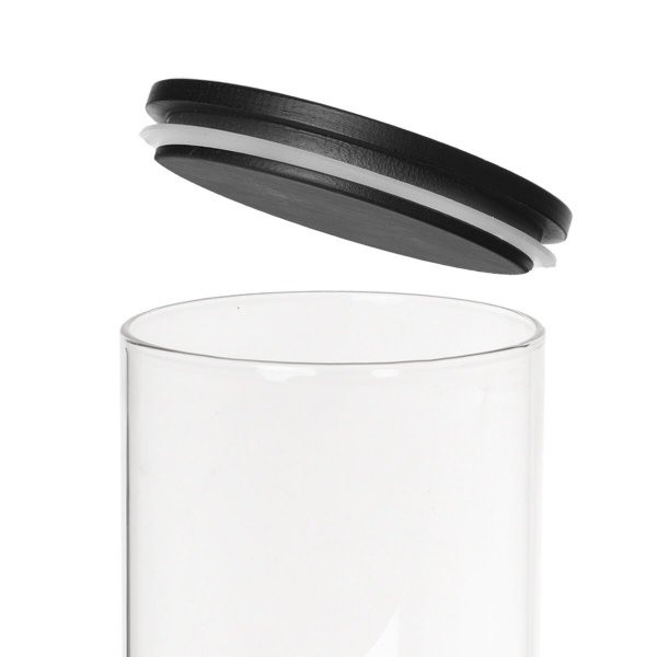 Dóza s víčkem se silikonovým těsněním na uskladnění potravin. Pevné uzavření zaručí, že uložené potraviny nevlhnou a zachovávají si své aroma i chuť a do nádoby se nedostanou potravinoví škůdci. Vhodné pro luštěniny, rýži, těstoviny i sypké potraviny. Materiál: borosilikátové sklo, bambus s povrchovou úpravou v černé barvě, silikonové těsnění. Rozměry: objem 0,5 l, pr. 9 cm, v. 9 cm. Skleněná část je vhodná do myčky.
