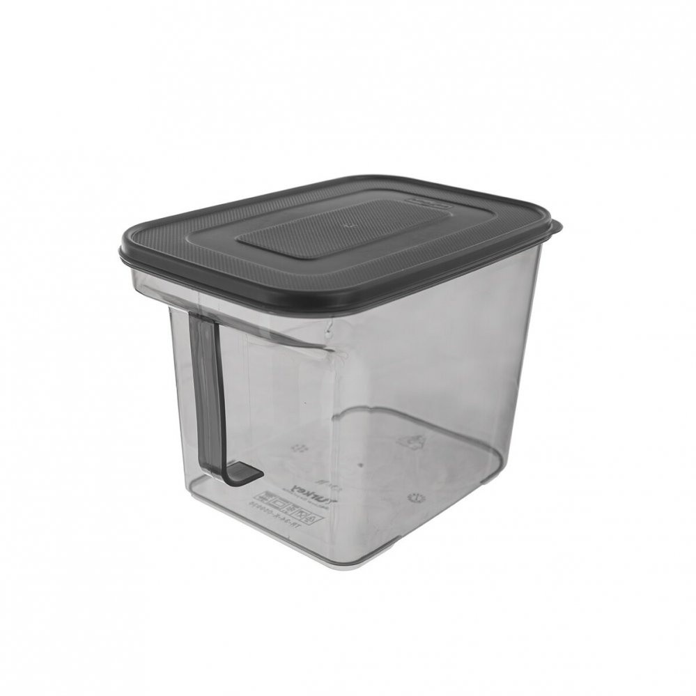Zásobnice na potraviny s víčkem a s držadlem. Pohodlně a přehledně uloží mouku, cukr, sůl, krupici… Díky uchu je velmi pohodlná na manipulaci. Víčko zabrání rozsypání, zvlhnutí, přejímání vůní a chutí z ostatních potravin uložených ve skříňce. Díky transparentnosti máte na první pohled přehled o obsahu zásobnice. Díky tvarovanému víčku dobře stohovatelné. Materiál: PP plast. Odolná teplotám od -25 °C do +95 °C. Rozměry: objem 3,25 l, 23x16x15 cm. Vhodná do myčky na nádobí, bez víčka také do MVT.