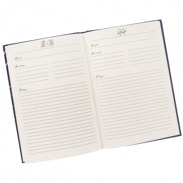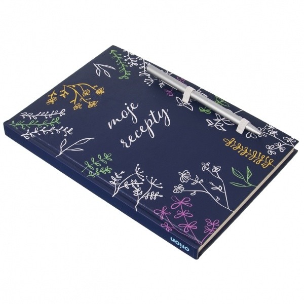 Kniha na recepty s propiskou může být pěkným dárkem pro vášnivou kuchařku/kuchaře nebo pekařku/pekaře. Svoji sbírku receptů si může zaznamenat na připravené stránky. Je doplněna o propisku pro zapisování receptů. 180 stránek pro vaše recepty. Materiál: papír, kov, guma. Rozměry: 14,5x1,5x21,5 cm.