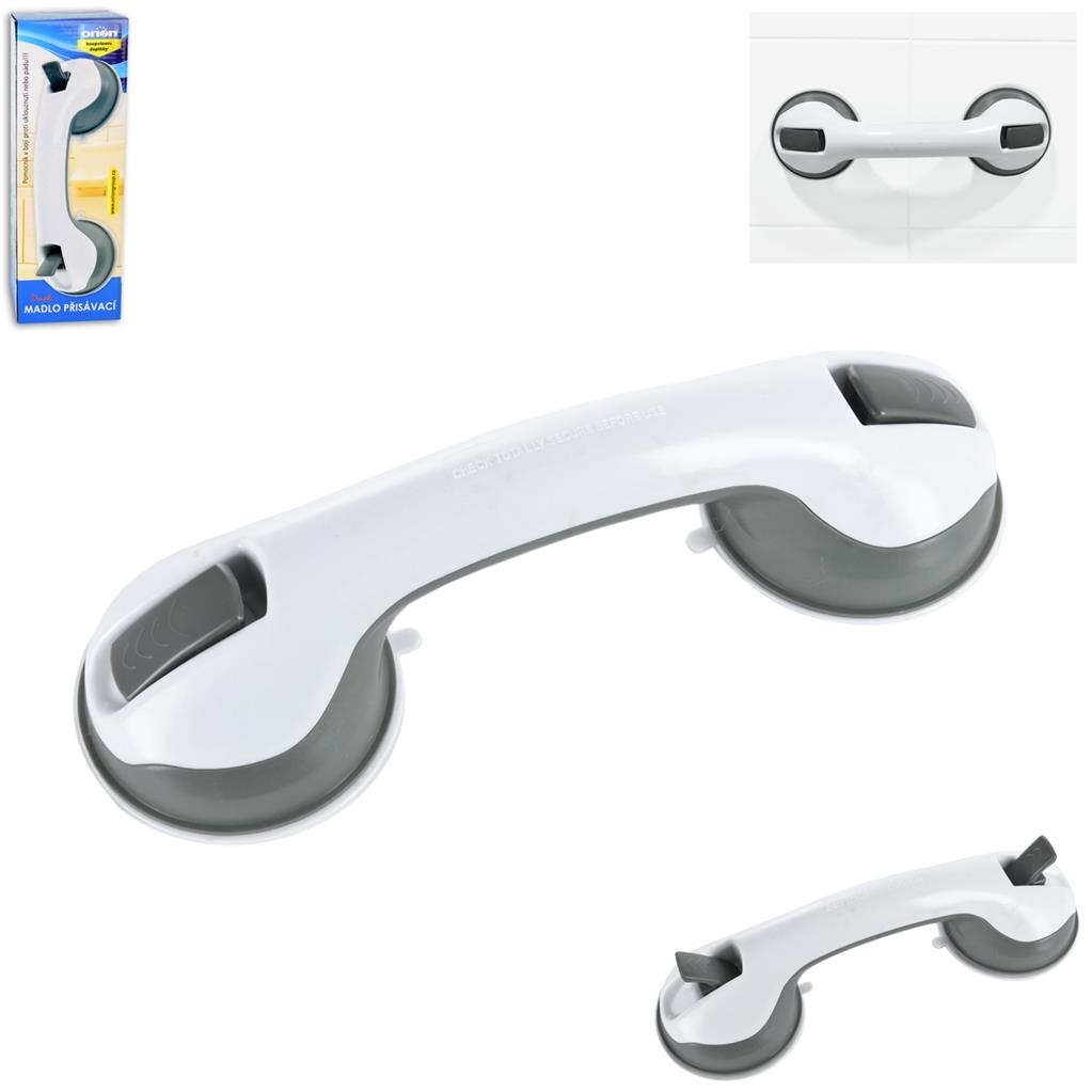 Bezpečnostní madlo do koupelny s přísavnými talíři usnadní pohyb ve vaně, sprše i u toalety. Je mobilní, nemusíte při jeho připevňování ničit obklady vrtáním. Stačí dobře očistit plochu, na kterou madlo připevníte pomocí přísavky. Materiál: plast. Rozměry: pr. přísavné plochy 10 cm, délka 30 cm.